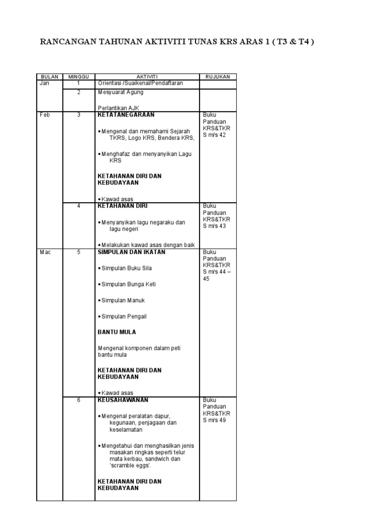 Rancangan Tahunan Aktiviti Tunas Krs Tahun 4 5 6 Pdf